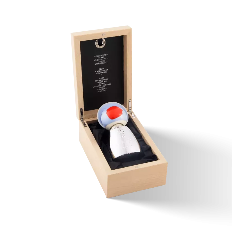 L'anno 195 a.C., segnato da un irrefrenabile risveglio dei sensi e da una rinnovata celebrazione dei lussi e dei piaceri della vita , è simboleggiato dall'emergere di una sapiente armonia di note agrumate, erbacee e legnose, in cui si sprigiona tutta la gioia e la vivacità del fico. La fragranza è esaltata da una base legnosa audace , in cui accordi nobili e avvolgenti di cuoio , oud , legno di cedro, patchouli , legno di cashmere e storace danzano attorno ai misteriosi sentori orientali di incenso e tè nero , che ci spingono verso nuovi orizzonti inesplorati. La fragranza 195 d.C. è presentata in un'elegante scatola di legno rivestita in seta e sormontata da uno splendido tappo in porcellana pregiata.