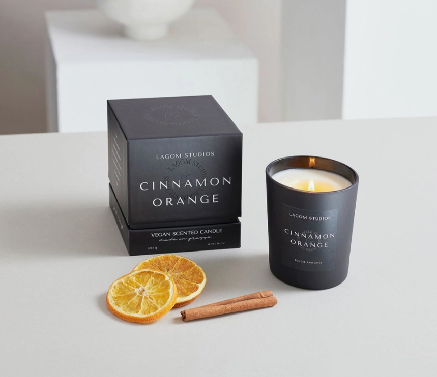 Candela profumata vegana Cinnamon Orange – prodotta a Grasse. Giornate invernali nella loro più deliziosa eleganza olfattiva. Già all'apertura della scatola, la candela profumata Cinnamon Orange di LAGOM STUDIOS emana un aroma inebriante che risveglia l'inconfondibile attesa per il periodo più accogliente dell'anno. Accendendo la candela, si sprigiona il suo delicato profumo. La sensazione avvolgente del tempo invernale coccoloso si diffonde. Un bouquet di arancia fruttata, cannella speziata e calda con un tocco di dolcezza, fiori d'arancio leggermente amari e iris elegantemente cipriato costituisce la nota armoniosa della candela Cinnamon Orange.