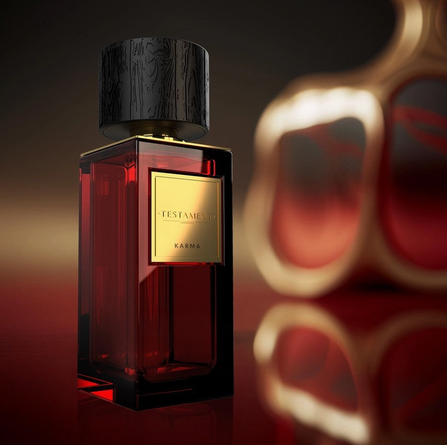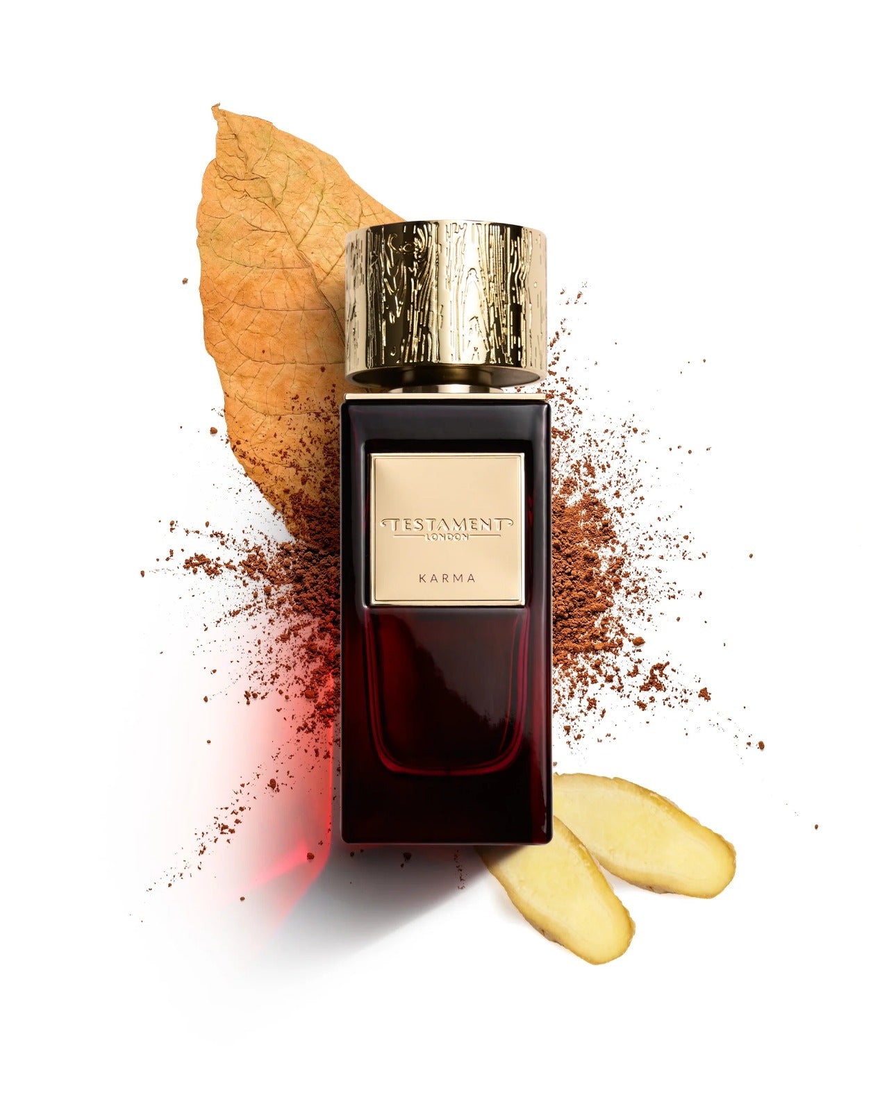 Allucinogeno… evolvendosi galantemente verso tutto ciò che conosci e definisci gioia. “Karma” si occuperà quasi esclusivamente dei tuoi ricordi e sentimenti interiori senza alcuna esitazione. Ricordandoti tutti i grandi momenti. Ti ricorda le risate, il flirt, il ballo, il tuo miglior bacio e il tuo film preferito. È timido, ma leggermente polveroso e secco, stimolante, intenso e ti istiga a provare, a sentire la fretta o a ricordarti la tua cotta più dolce. Nostalgico ma moderno, questo è un ritorno a tutti i momenti che ti hanno reso migliore. Note di vaniglia strazianti che cantano tra chiodi di garofano, anice e cacao, dispiegandosi come una fitta nebbia sul palco fino a dove è seduto in attesa nell’oscurità quello che alla fine chiamerai semplicemente l’odore dell’Amore.