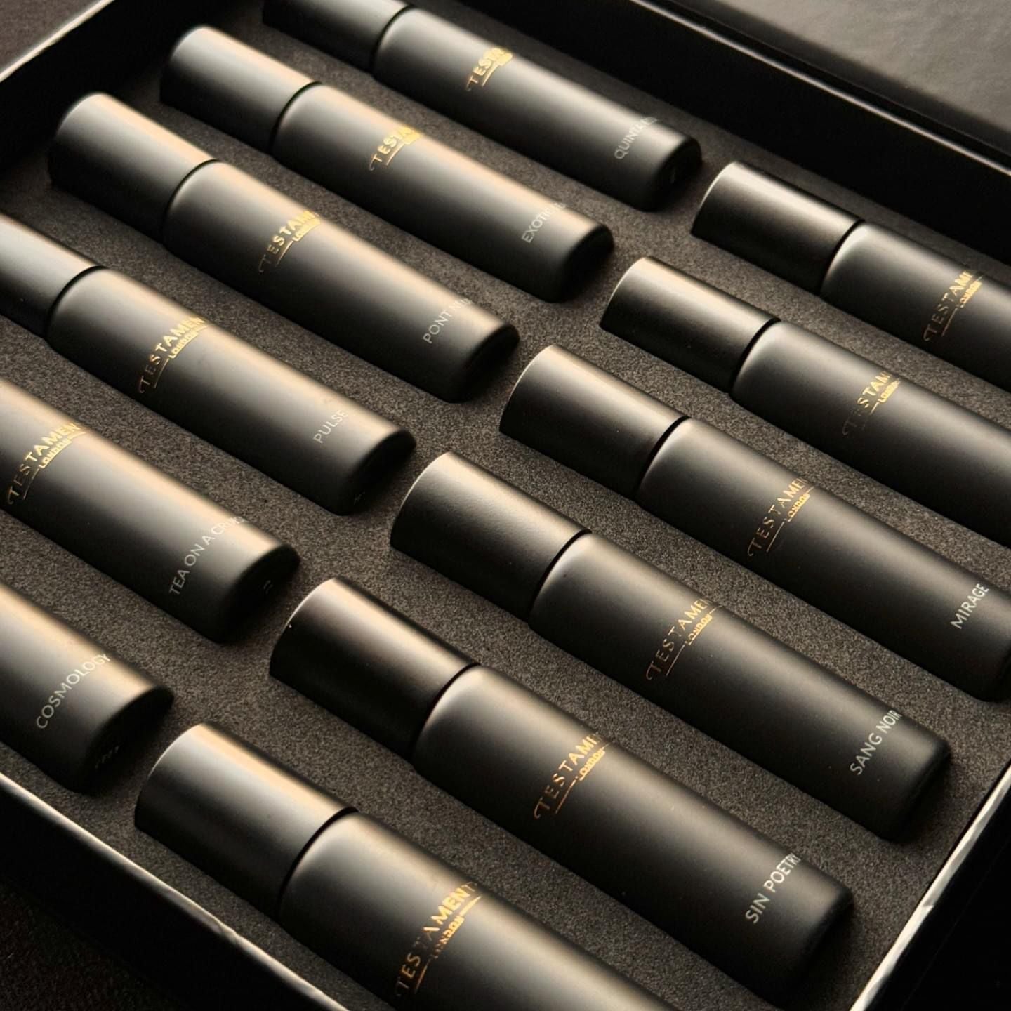 Un momento sospeso tra passato e futuro, Twelve O'Clock cattura l'eleganza dell'essere puntuali. Più che un set di fragranze, è un viaggio curato in dodici flaconi ricaricabili, ognuno dei quali racchiude lo spirito delle creazioni più distintive di Testament London. Pensata per chi rifiuta l'ordinario, questa collezione è al tempo stesso intima e grandiosa: portatile ma ricca, raffinata ma audace. Con la sua forma elegante e il nebulizzatore di precisione, ogni flacone da 15 ml offre un'esperienza duratura, cento giorni di presenza in ogni flacone. Twelve O'Clock non è semplicemente un set regalo; è il rituale Testament completo, creato per chi capisce che il vero lusso si trova nei dettagli, nella disciplina e nella scoperta.